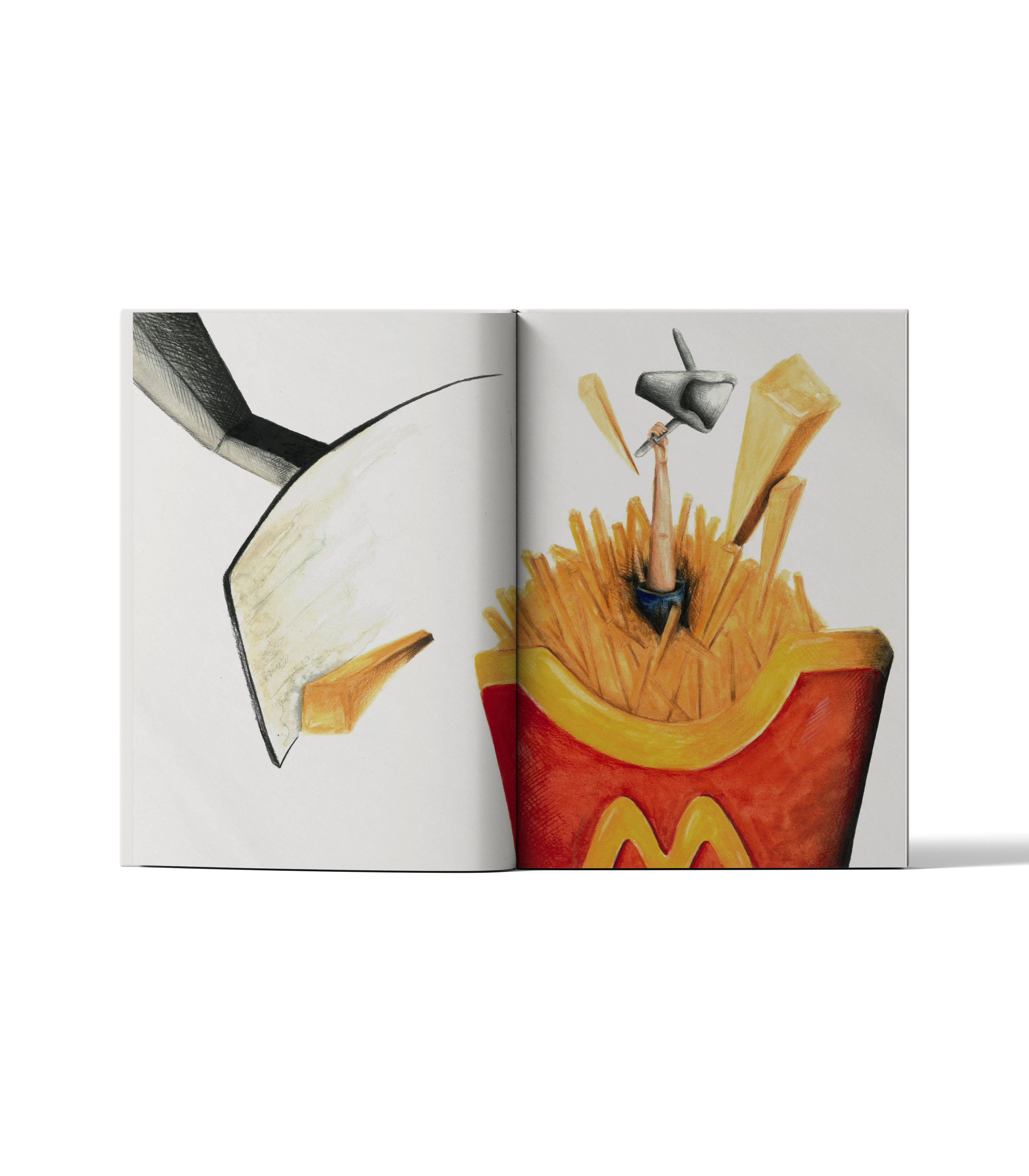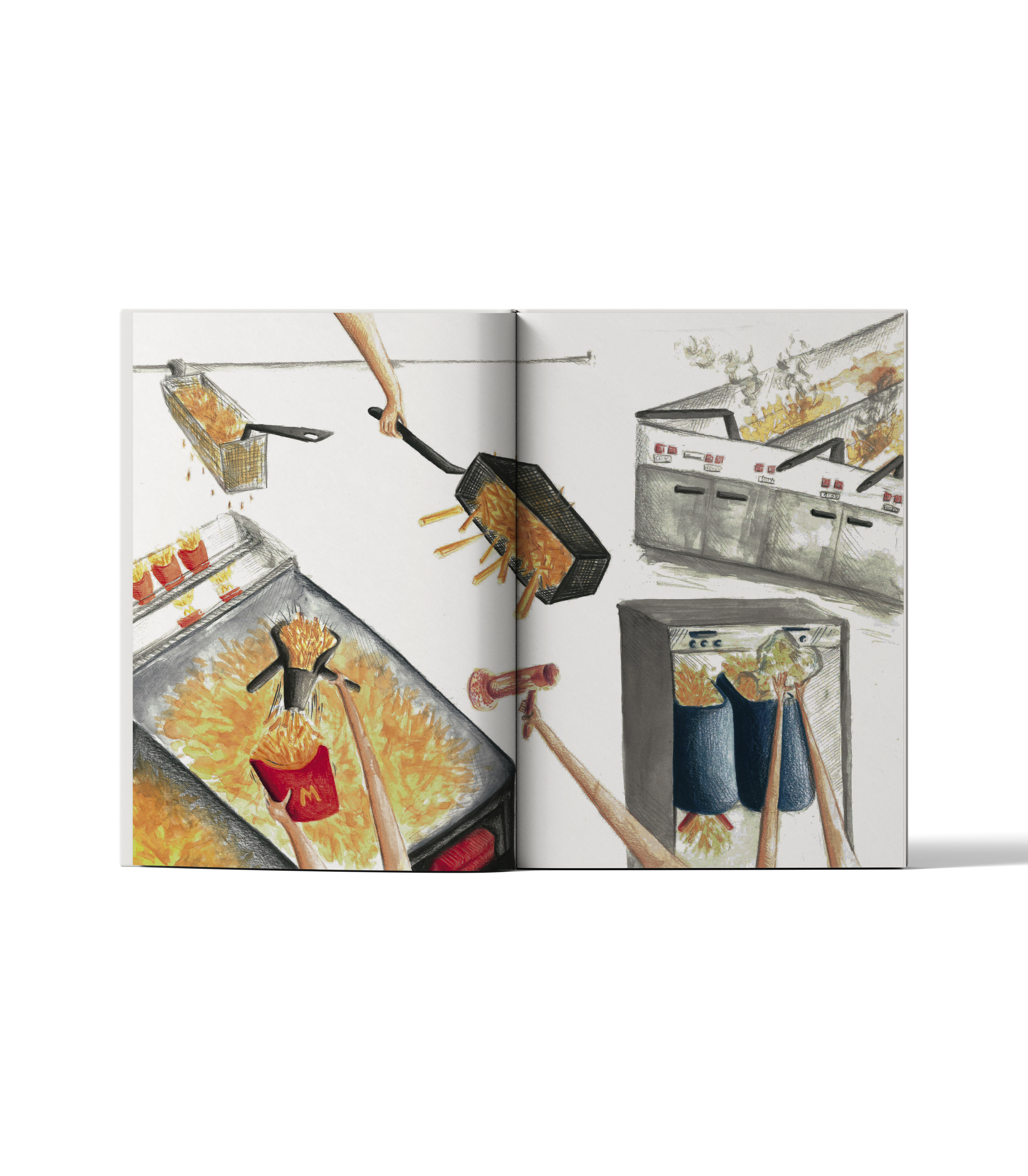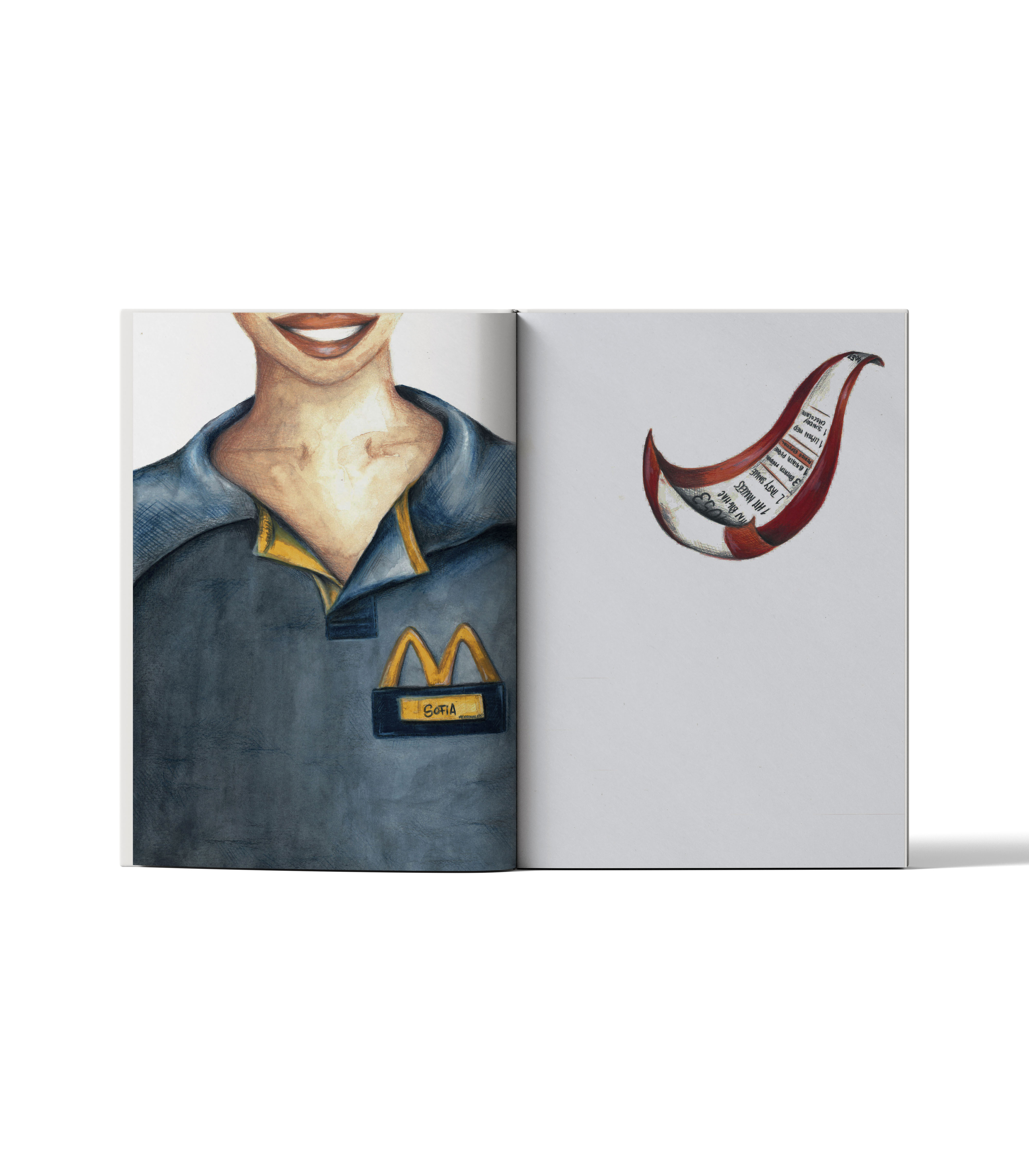 This project is an illustrated book created from my experience as a part-time worker at McDonald's. The publication humorously reveals the invisible side of what happens behind the scenes in this work environment.