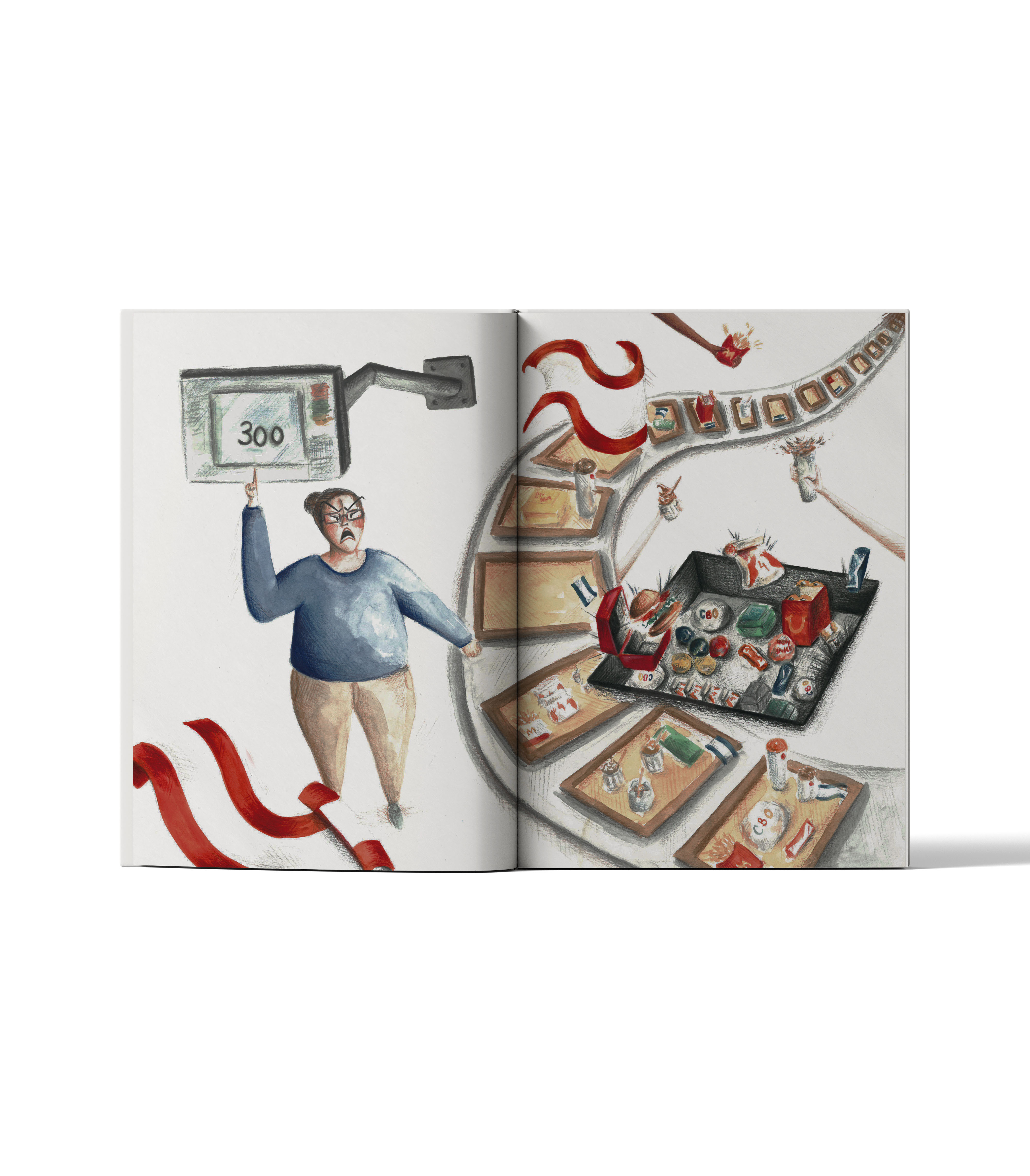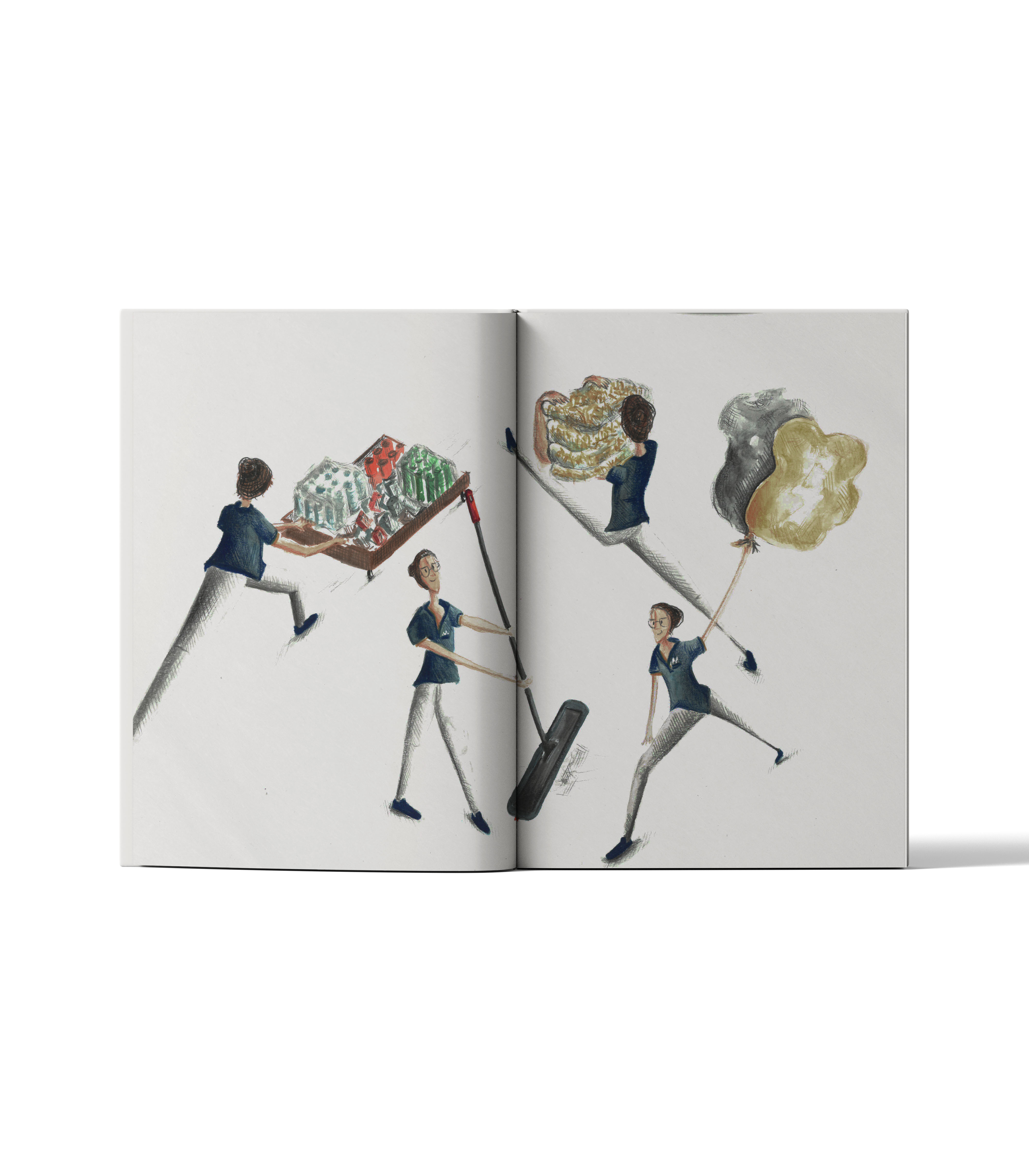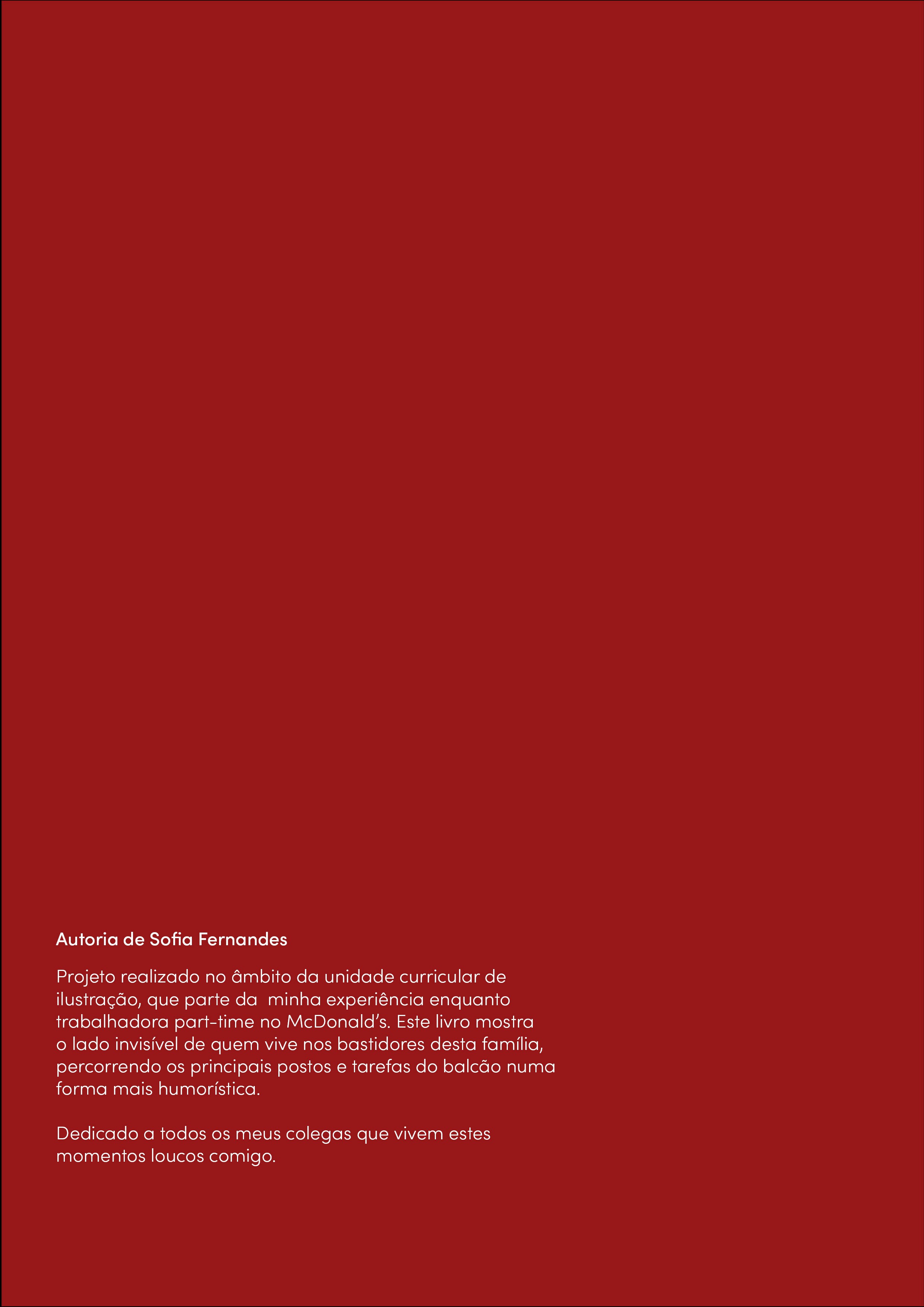 This project is an illustrated book created from my experience as a part-time worker at McDonald's. The publication humorously reveals the invisible side of what happens behind the scenes in this work environment.
