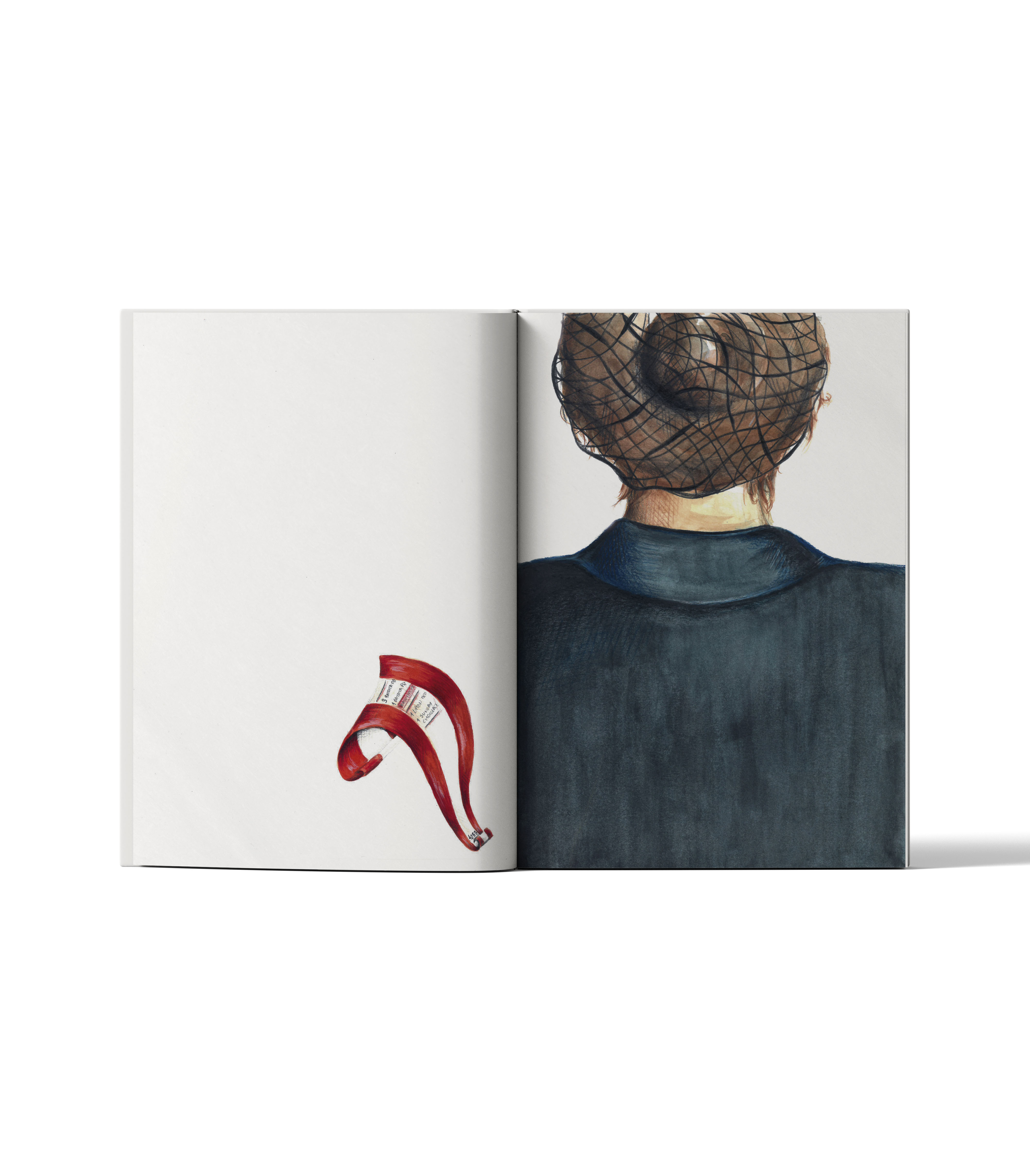 The project was structured as a continuous sequence across 10 spreads, plus cover and back cover, ensuring narrative rhythm and cohesion. Four counter stations and four distinct tasks were represented, organizing the narrative while maintaining variety across the spreads. A consistent visual system was established through a restricted 2-color palette (blue and red) and a unified illustration style, ensuring all compositions belonged to the same visual language.